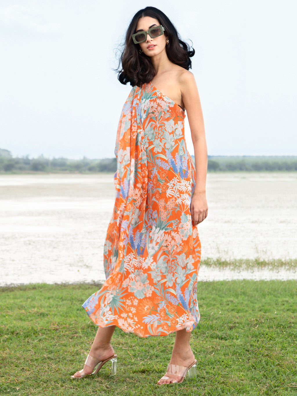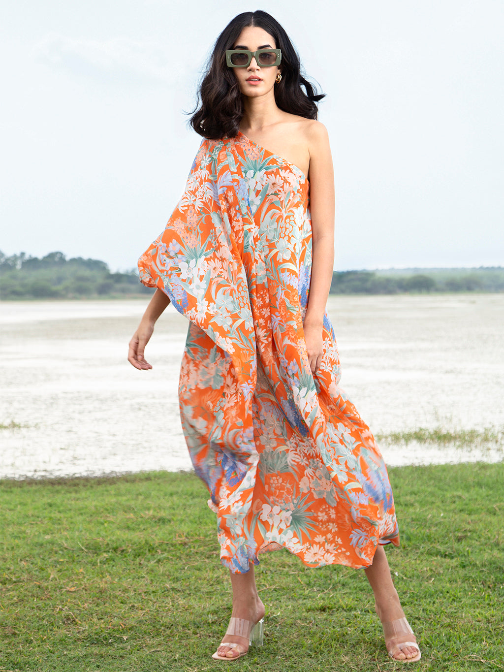 Orange Palo One Shoulder Kaftan Dress