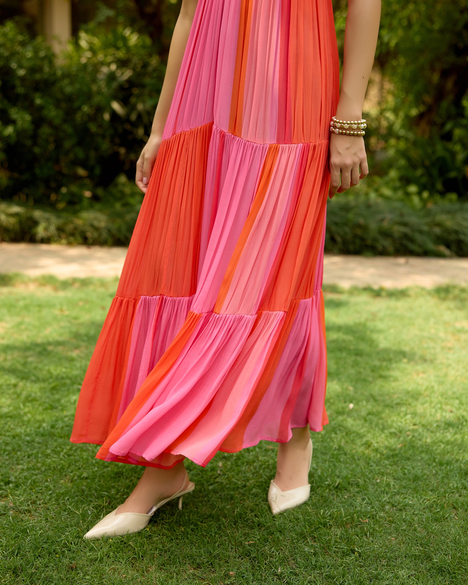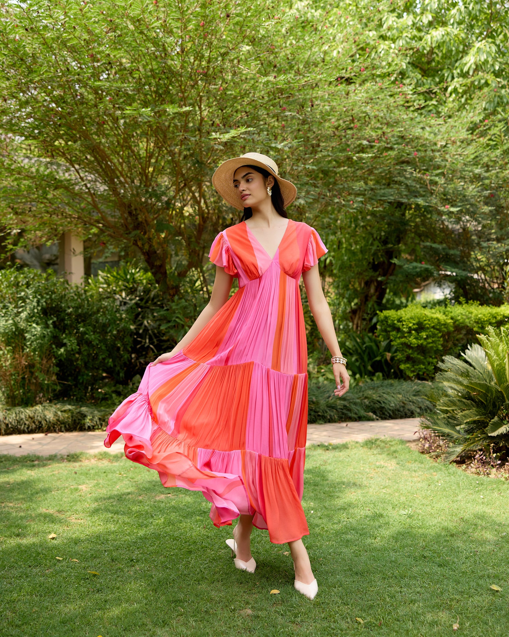 The Swirl Dress is where elegance meets ease — a flowing silhouette that cascades softly from the shoulders, finished with a striking open-back detail.