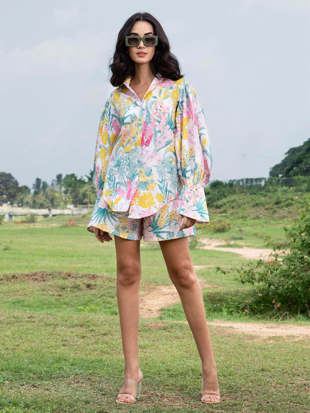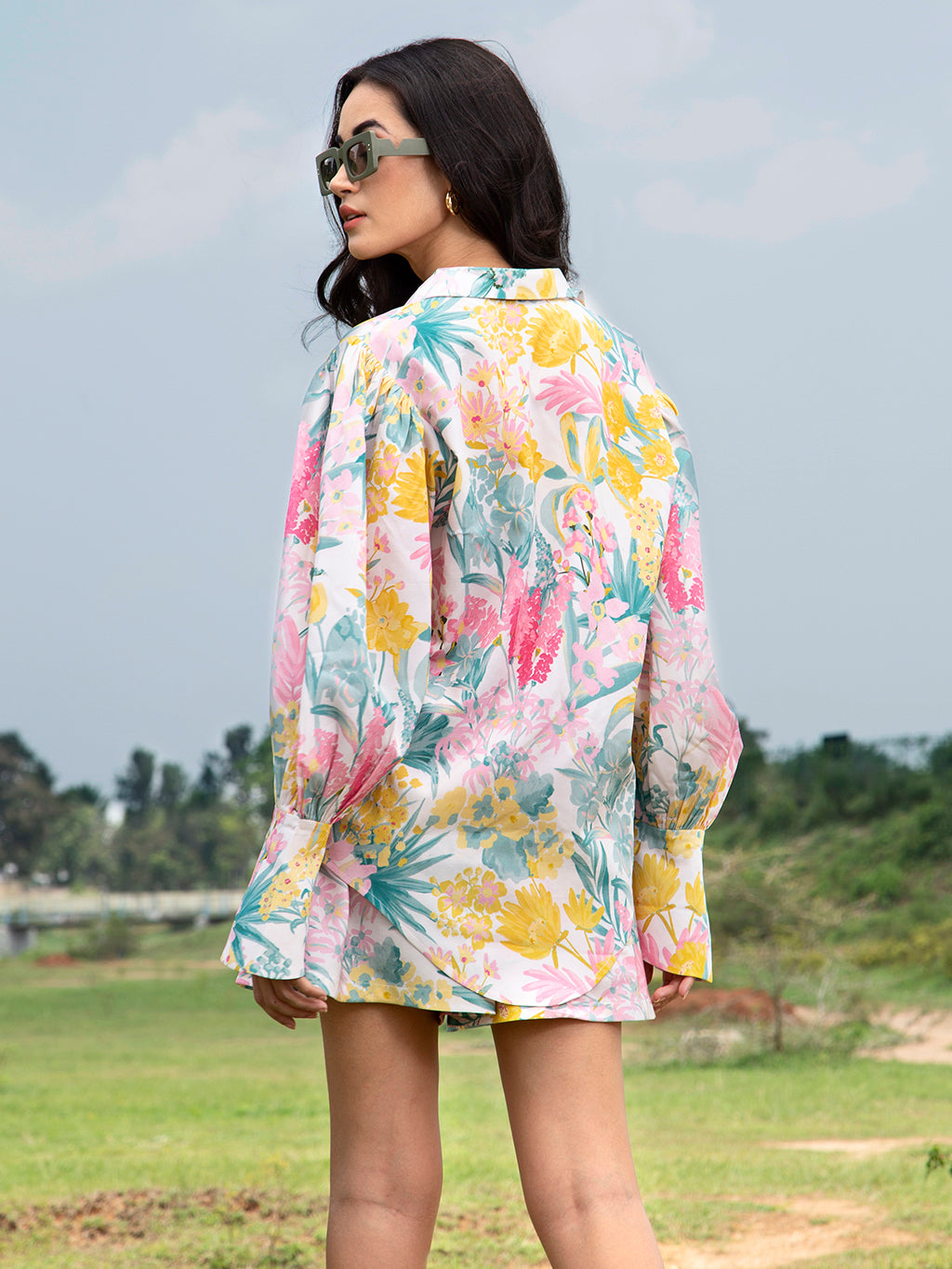 The white poppy co ord set comes with a buttoned down shirt and shorts that can be styles in different ways , made of luxurious bemberg silk this 2 piece set is sure to glam you up .