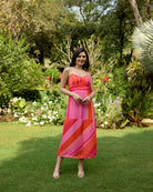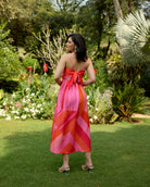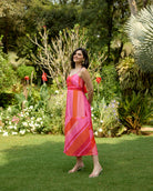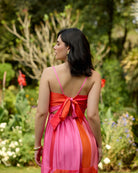 The Coral Dash Dress brings a playful charm with its delicate strappy yoke and chic tie-up back. Designed to strike the perfect balance between fun and flirty, this silhouette flows effortlessly for a breezy, feminine appeal. Crafted from natural Bemberg silk, it ensures both elegance and comfort, making it a versatile choice for day-to-night dressing.