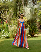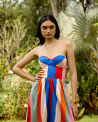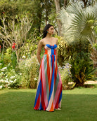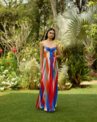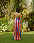 The Dazzle drip dress captivating dress features a structured bustier top that highlights the upper body with its form-fitting design. The design is completed with a flowing skirt, creating a striking contrast between the fitted bodice and the flared silhouette. This combination results in a sophisticated and fashionable look, perfect for making a statement at any special occasion. Made in Bemberg satin