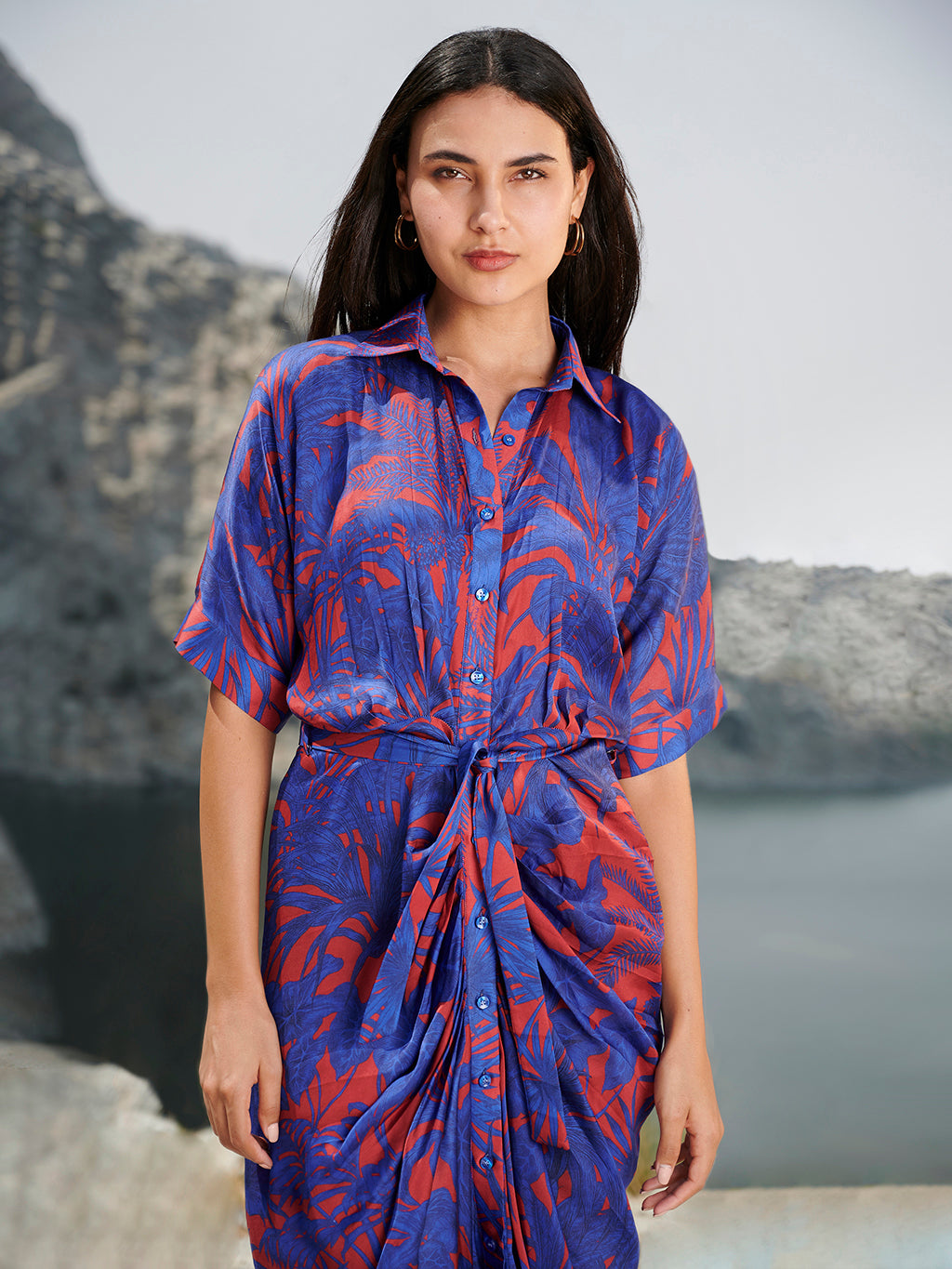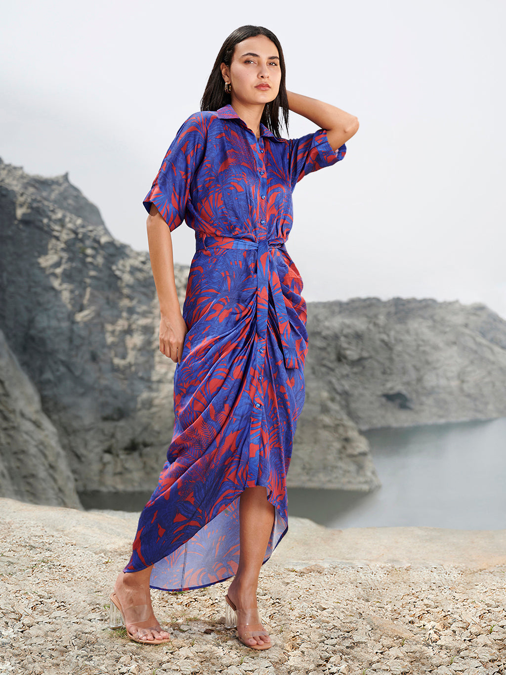 Red and Blue Sonia Midi Dress