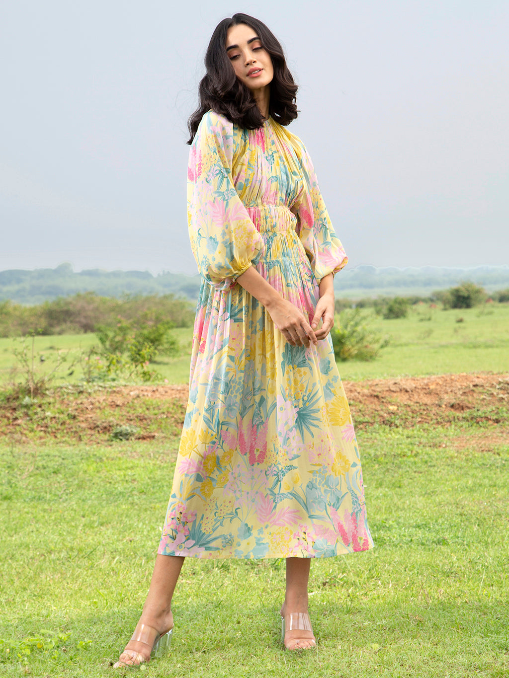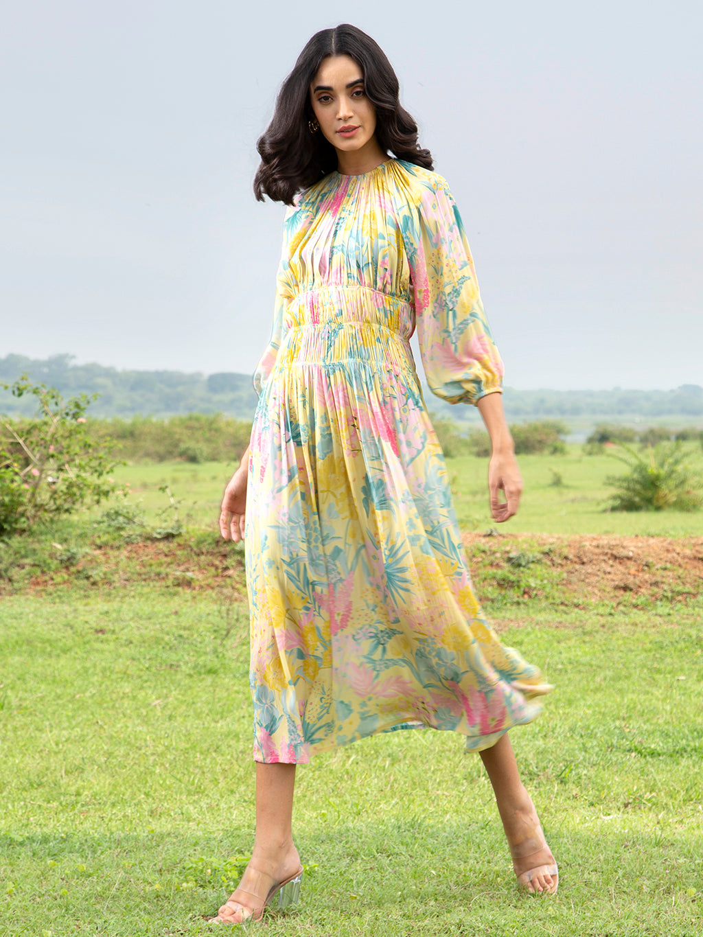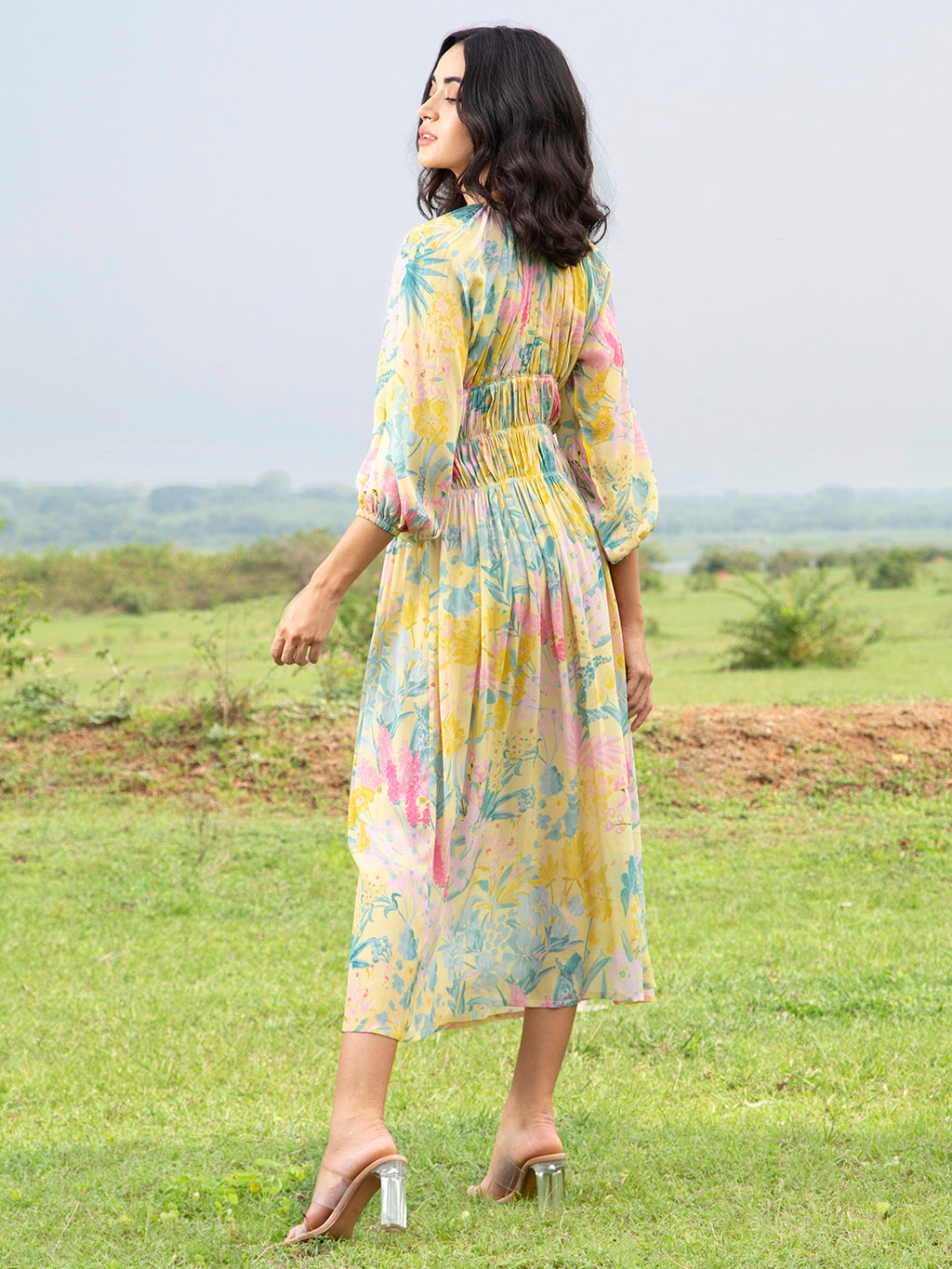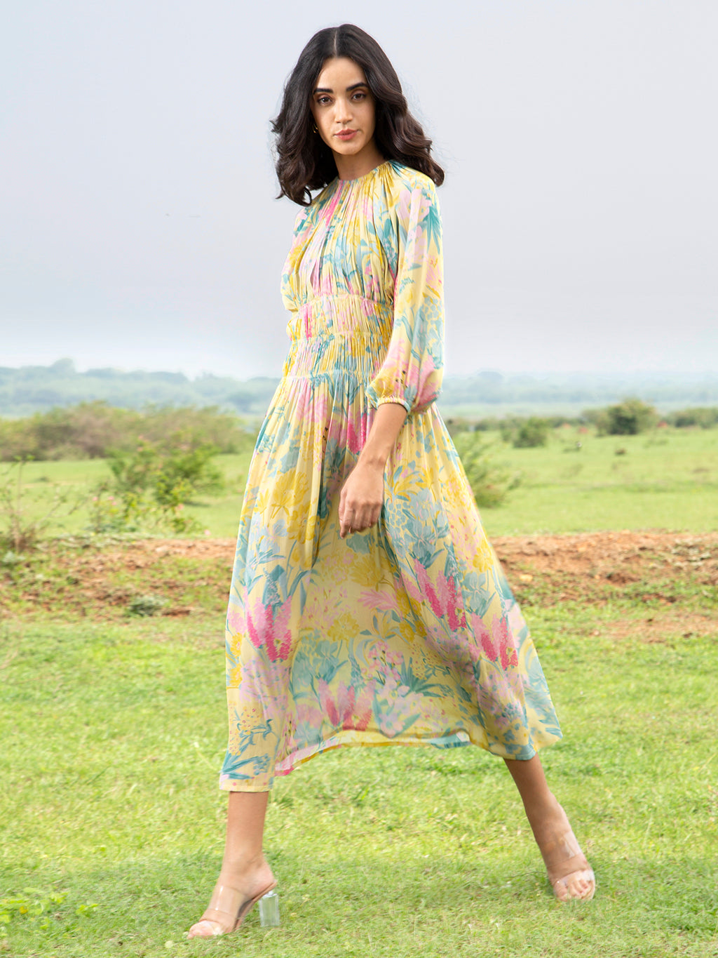 Yellow Sage Midi Dress