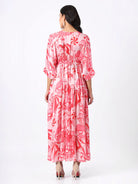The Blossom kaftan is digitally printed on bemberg satin material giving lustrous and luxurious finish to the dress. Featuring V neck and delicate clinches are done on the shoulders and the waist is elasticated elegantly. The eye catching candy colour adds beauty and feminity to the blossom kaftan .