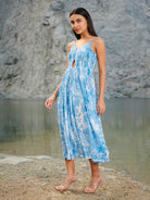 The blaze dress is draped in sheer elegance and timeless charm , with smocking yoke that fits your body perfectly crafted from luxurious bemberg crepe. This enchanting ensemble effortlessly captures the essence of sophistication and grace , making you the center of attention at any affair .