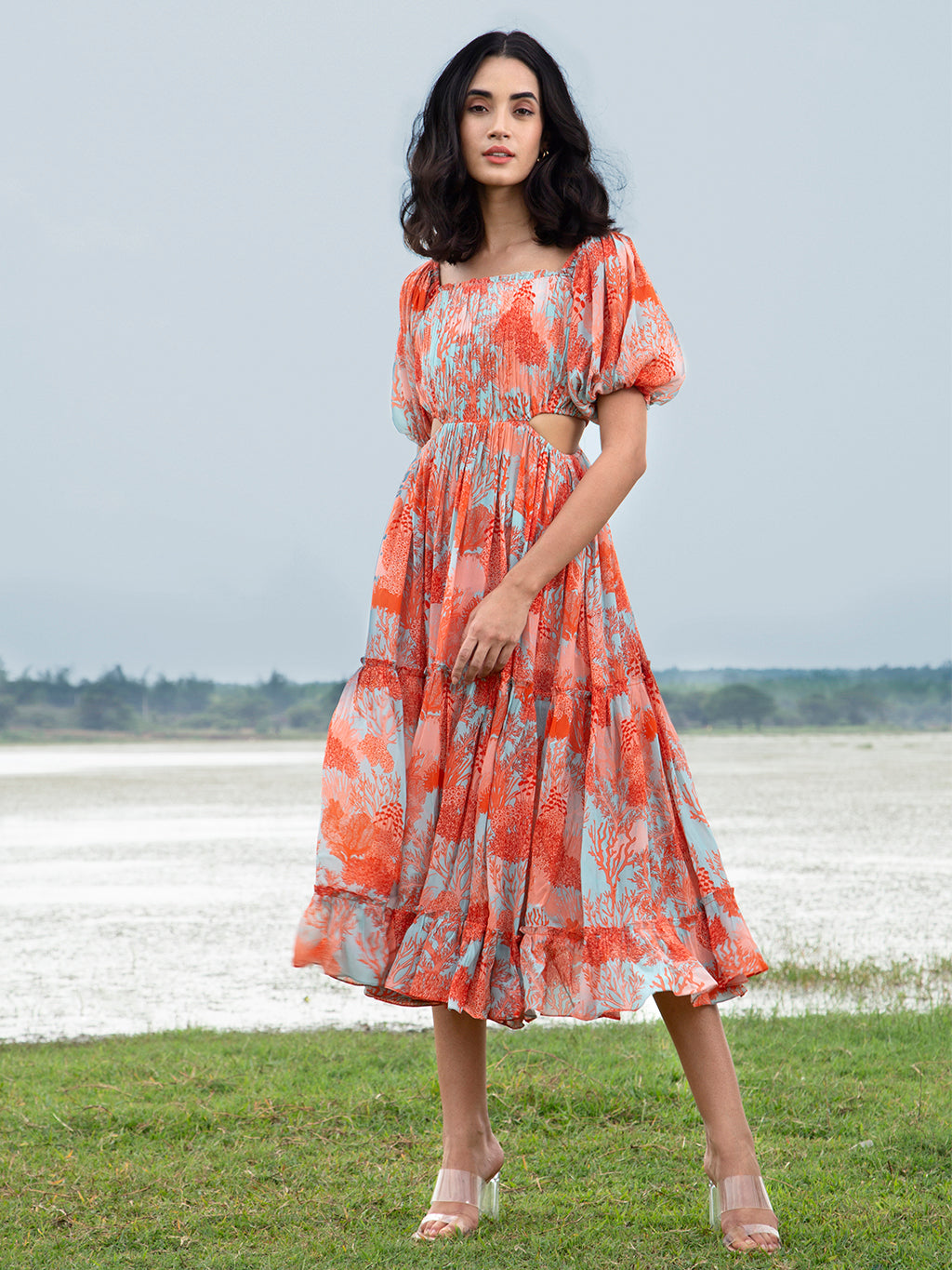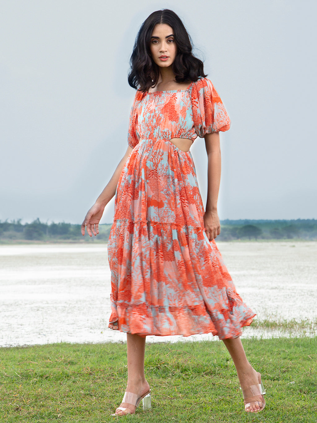 Orange Amber Midi Dress