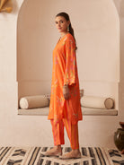 Discover elegance in our Natural Bemberg Silk Kurta Set in vibrant orange. Featuring exquisite scallop detailing on the kurta and complemented by stylish strip pants, this ensemble combines traditional craftsmanship with modern flair. Perfect for any occasion, it promises comfort and sophistication, making it a must-have in your ethnic wardrobe.