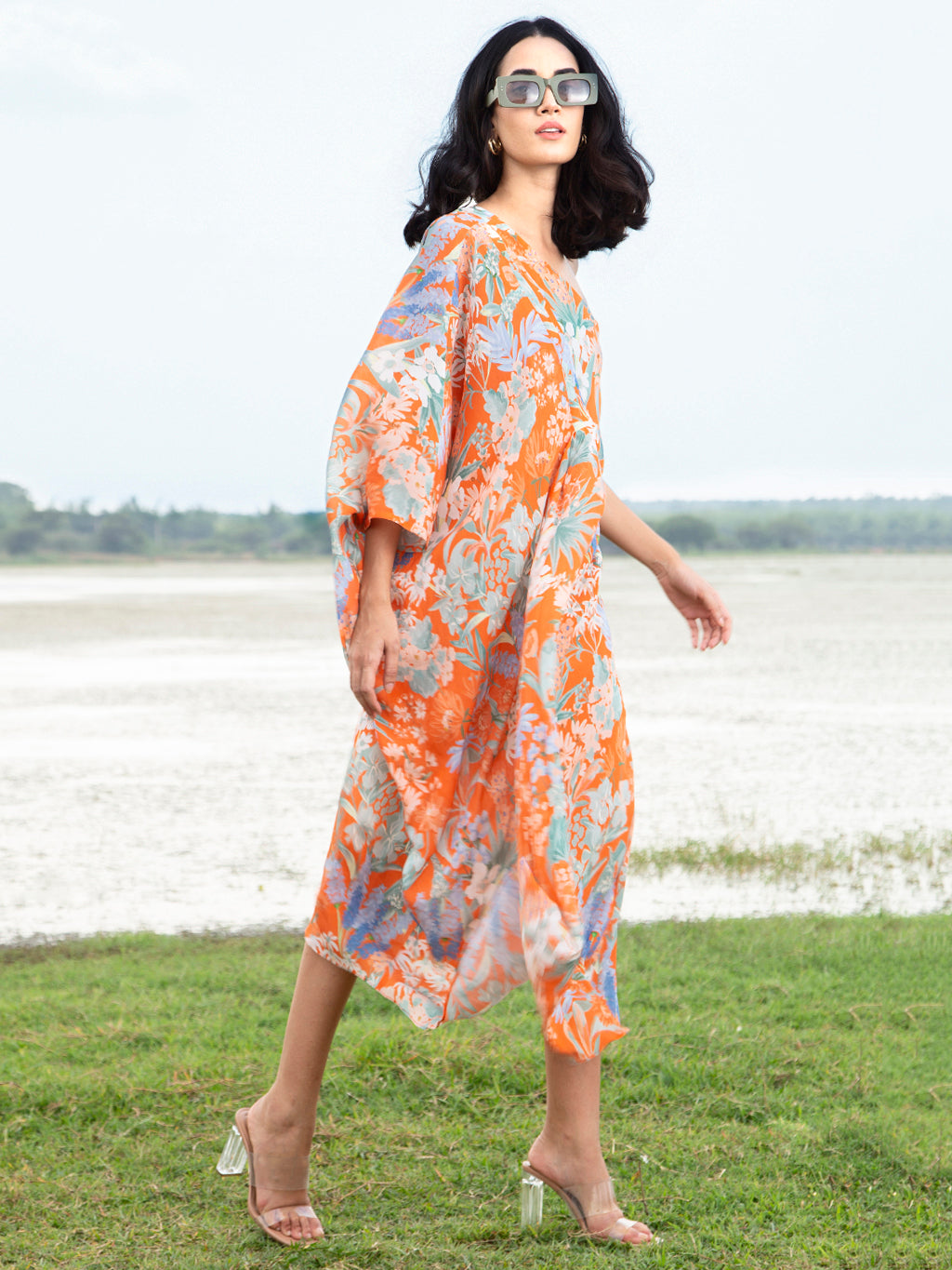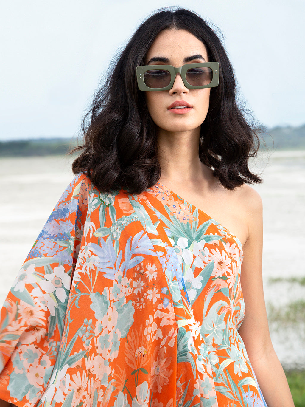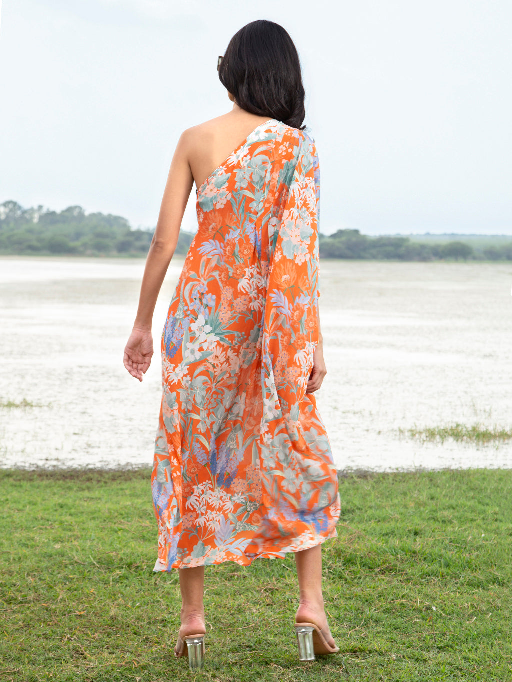 The palo one shoulder kaftan is your perfect brunch outfit or your go to resort wear , made of natural bemberg crepe this kaftan has very flowy silehoute .