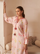 Elevate your style with our Natural Bemberg Silk Kurta Set in delicate light pink. This comfort fit ensemble features exquisite thread embroidery, a flattering gather neck, and elegant dori detailing. Perfect for any occasion, it blends traditional craftsmanship with modern charm, offering both comfort and sophistication.
