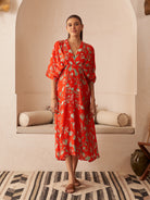 Elevate your wardrobe with our Natural Bemberg Silk Tunic in vibrant orange. Featuring bold pleats cinched at the waist, this tunic blends traditional craftsmanship with contemporary flair. Perfect for any occasion, it offers both elegance and comfort, making it an essential piece in your ethnic collection.