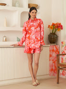 The Red Scarlet Shorts exude playful charm with their breezy fit and floral pattern. Crafted from lightweight Egyptian cotton, they promise comfort and sophistication for all your summer adventures.