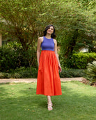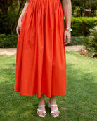 The Melon Melt Dress is a charming midi designed with a beautifully textured bodice and a skirt that flows with graceful ease.