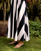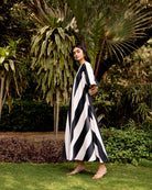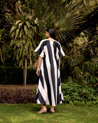 This Two tone layered lush maxi dress features a relaxed and flowing silhouette with comfortable short sleeves. The design showcases an asymmetric striped pattern, creating a bold and modern visual effect. This unique arrangement of stripes adds a dynamic and artistic touch to the dress, making it a fashionable and effortless choice for various occasions. Enjoy the comfortable fit and distinctive style of this piece. Made with high quality Giza cotton