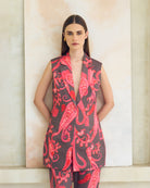 This powerful Amira Blazer Set (blazer and trousers) features a striking paisley print and a sharp, tailored silhouette that effortlessly enhances the wearer's poise. The waistcoat-style blazer provides a structured fit, while the coordinating trousers fall beautifully to create a long, lean line.