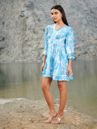 Prepare to twirl and enchant in this darling fit and flare dress, destined to steal hearts wherever you go. The classic v-neckline adds a hint of allure and the Delicate lace accents and exquisite print on the bemberg silk dress, adds a touch of intricate charm, elevating this dress to a realm of timeless beauty.