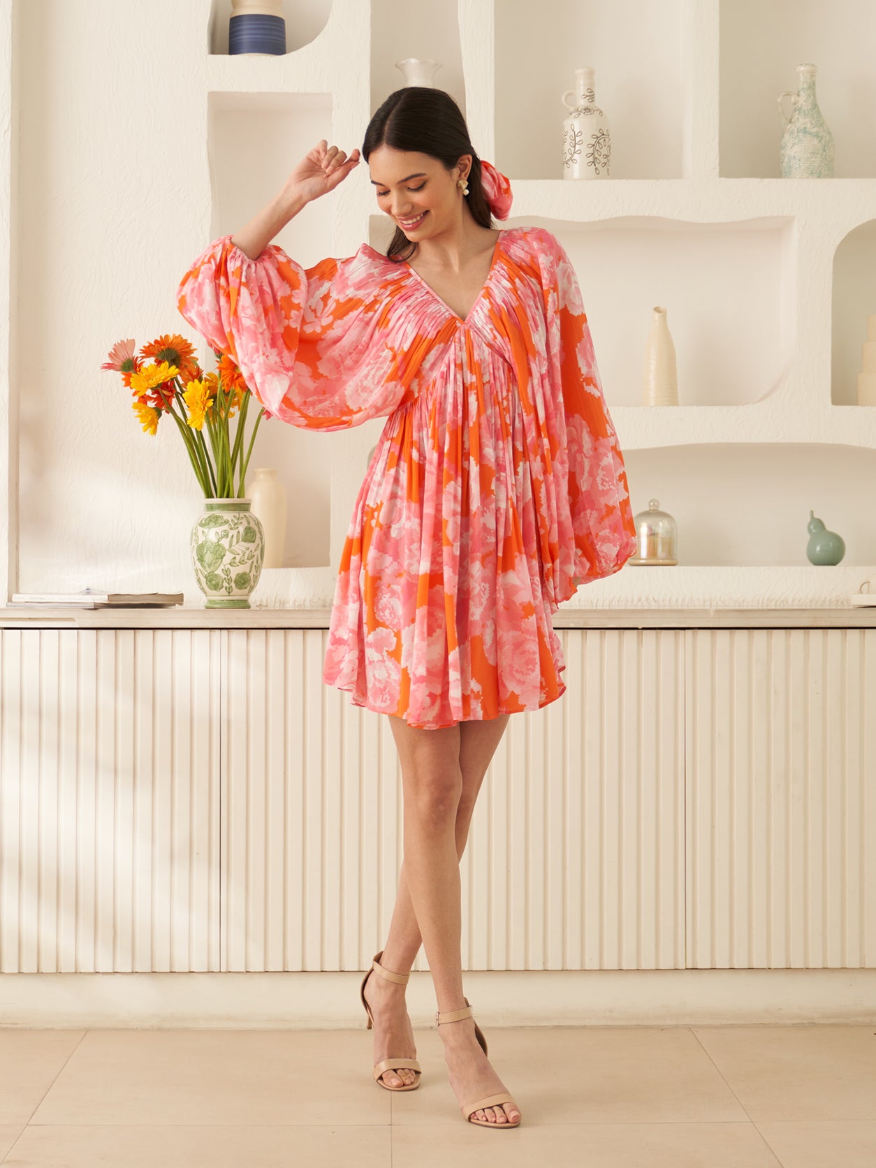 Elevate your travel wardrobe with our charming short dress, crafted for effortless style and comfort. Featuring a flattering V-neckline and playful gather detail, this dress exudes a carefree elegance that's perfect for sunny days and casual outings. Enjoy the breezy, flowy silhouette that effortlessly enhances your feminine allure with every wear , crafted in bemberg crepe.