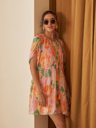 Embrace carefree elegance with our delightful summer dress, crafted from lightweight shimmer georgette. Designed for effortless style and comfort, it features a drawstring detail at the waist and gathered drop shoulders, adding a playful touch to its relaxed silhouette. Perfect for sunny days and casual outings, this dress exudes a sense of freedom and joy, making it an essential piece for your warm-weather wardrobe.
