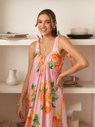 Elevate your summer wardrobe with our luxurious long dress crafted from lightweight silk. Featuring delicate tie-detail strap sleeves, this dress exudes timeless elegance and effortless charm. Perfect for sun-drenched days and romantic evenings, its flowy silhouette offers comfort and grace with every step, making it a must-have for the season's most memorable moments.